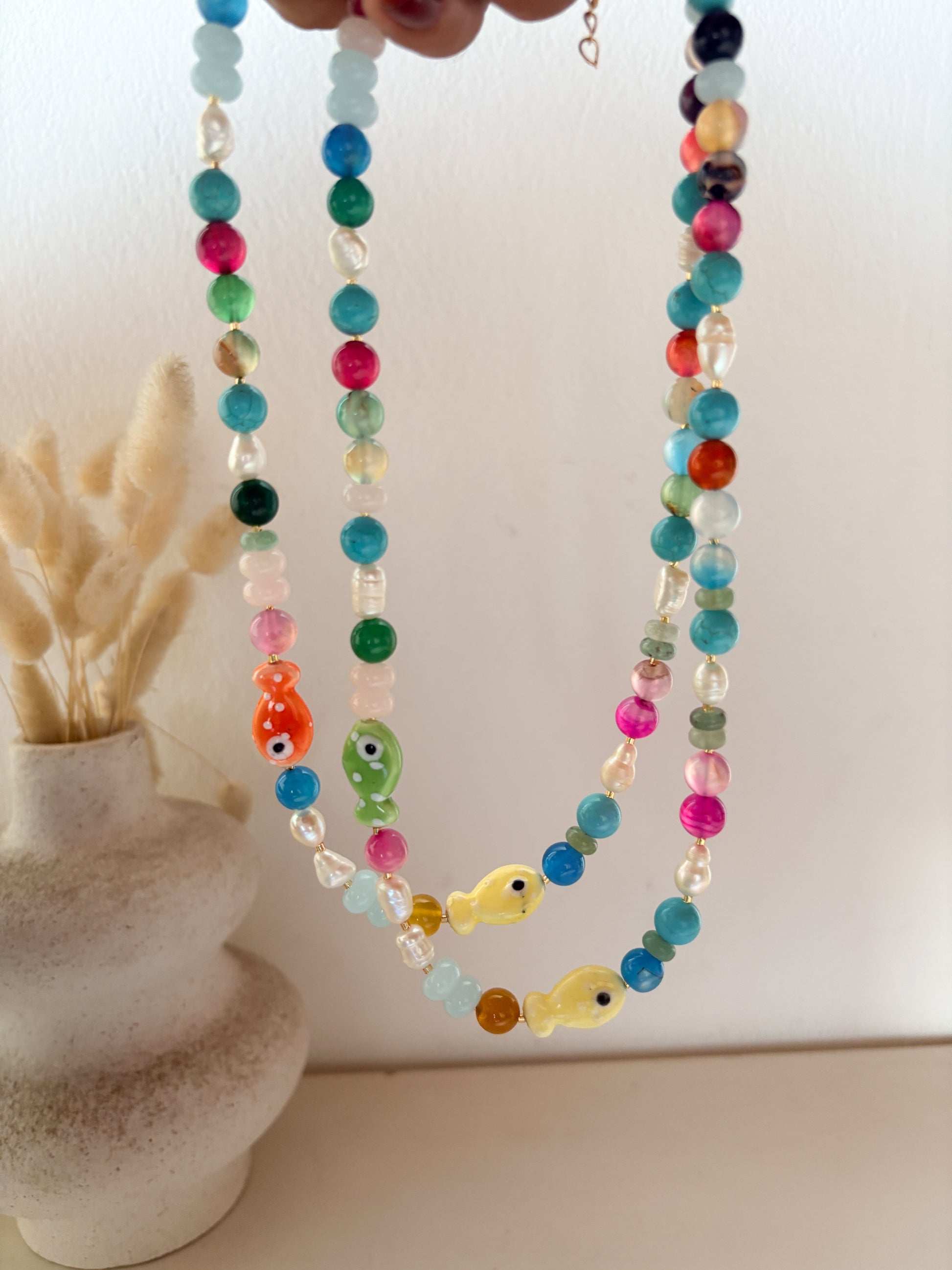 - Material: piedras ágatas, perlas, calcitas y turquesas combinadas y charms en cerámica ✨