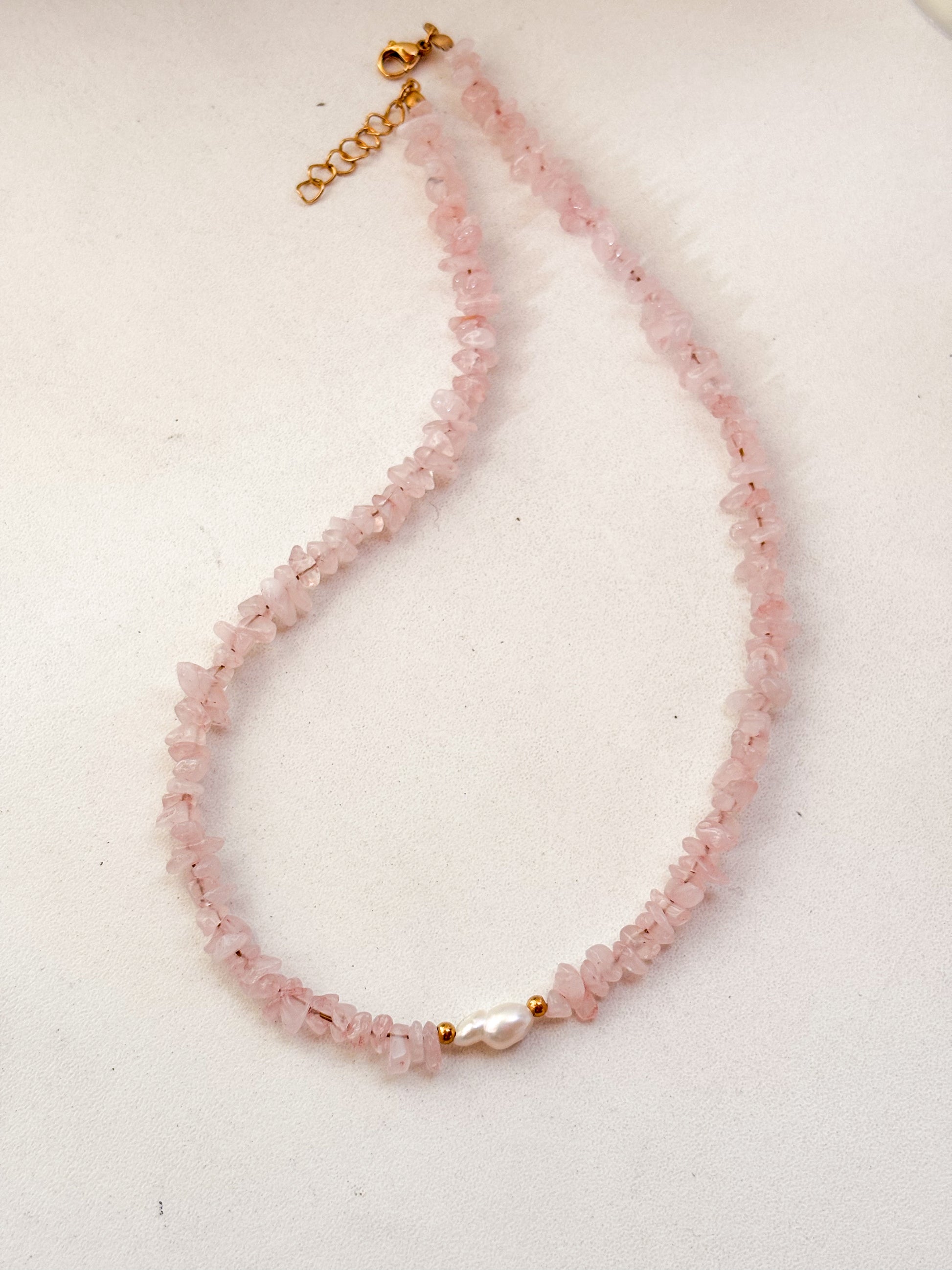 - Material: piedras cuarzo rosa y perla de Río ✨